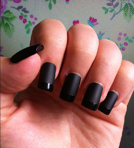 I chose the matte black nails with the black tips as I've really been wanting to buy a black matte nail polish but haven't got round to it yet. I have weird looking hands and I've always thought they look a bit manly but these nails have made my hands feel girly.